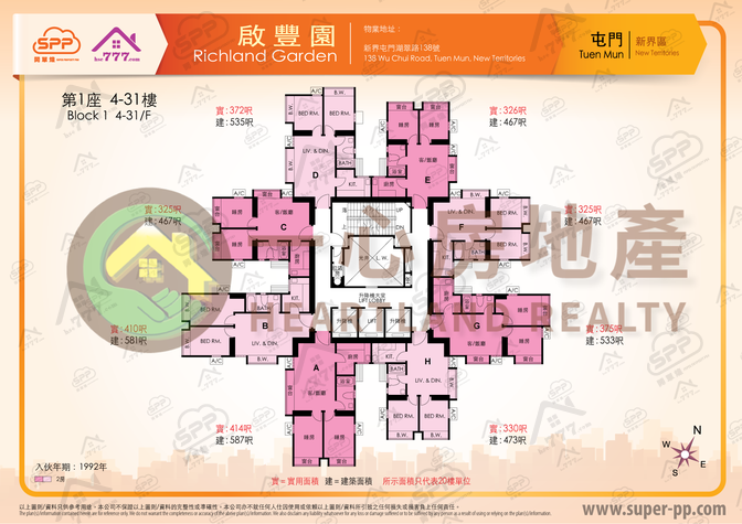 啟豐園屋苑資料 •啟豐園Richard Garden位於屯門碼頭湖翠路138號 •屋苑類型 : 私人住宅 •入伙日期由03/1992開始 •共有4座 •提供896個單位,均為兩房戶型景觀開揚,無檔海景,兩梯8伙設計 •實用面積由325呎至446呎 •小學校網: 屯門校網70 •中學 : 屯門區 •佳定物業管理 •其他設施室外泳池、兒童嬉水池、平台花園 •地下及一樓為商鋪 •停車場 地下及二樓設有停車場 •交通:鄰近屯馬南延線終站、巴士總站、輕鐵總站、往機場只數個巴士站,只需十多分鐘 •周邊環境:蝴蝶灣泳灘、公園、海濱長廊、騎術學校、哥爾夫球練習場等 •社區成熟:酒樓、超市、銀行、大小食肆、各類店舖…… •統計數據取自2021年人口普查(由政府統計處提供): 屯門碼頭 : 64,538人 *上述資料僅供參考用途, 如果因資料錯漏而引致之任何不便或損失, 一心房地產概不負責。
